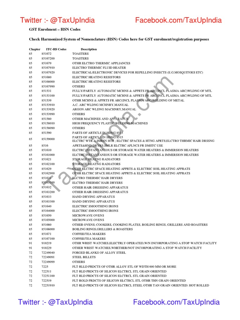 All Hs Codes Or Hsn Codes For Cargo With Gst Rates.